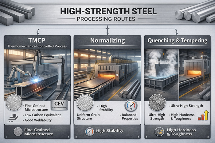 - Q-Series (Quenched and Tempered): This is the gold standard for ultra-high strength. By rapidly cooling and then reheating the steel, we achieve yield strengths from 690 MPa up to 960 MPa. However, these grades require strict thermal control during welding to avoid softening the material.