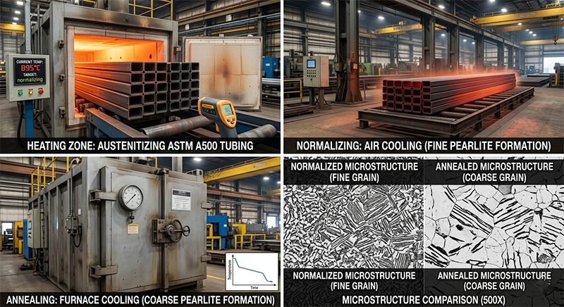 Normalizing is the “reset button” for steel’s molecular structure. It is designed to give the pipe a “normal,” uniform, and refined grain size, which is essential for structural integrity.