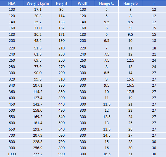 HEA Beams (Light Series)