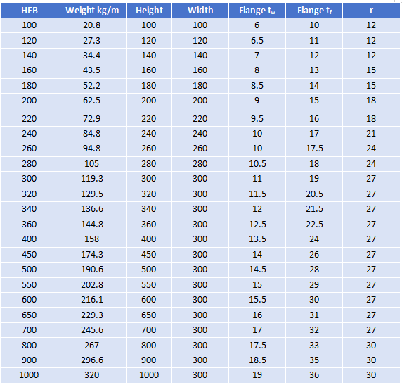 HEB Beams (Medium/Standard Series)