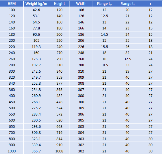 HEM Beams (Heavy Series)