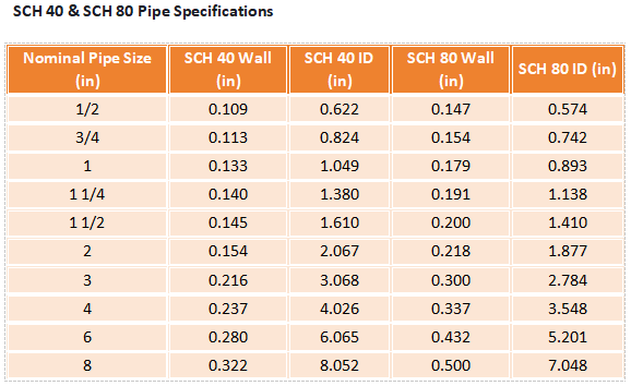 A 2-inch SCH 40 pipe typically handles around 280 psi. The same size SCH 80 pipe supports about 400 psi. SCH 80 pipe has a higher weight and typically involves greater material cost.