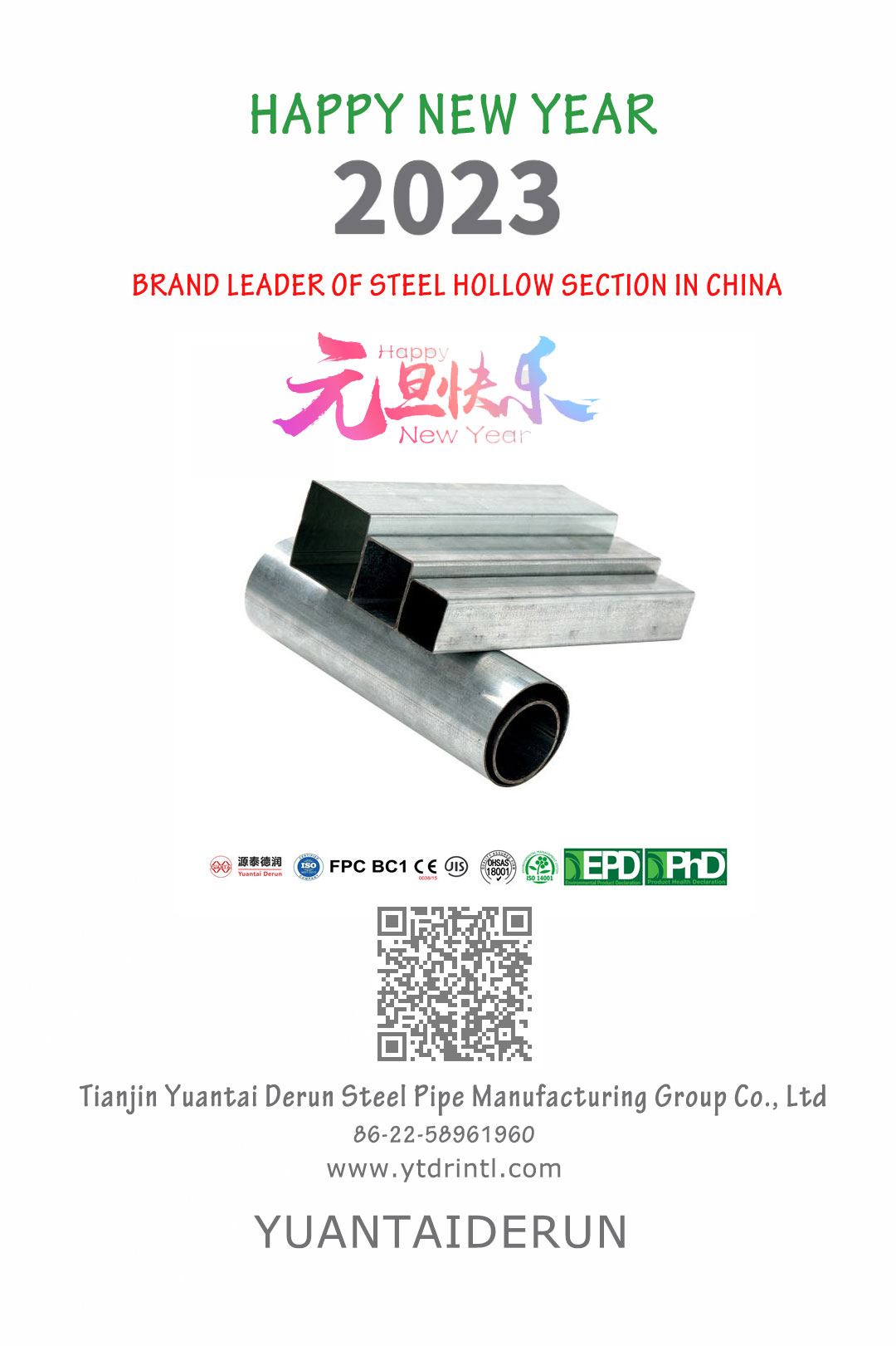 Fl-2022, Tianjin Yuantai Derun Steel Pipe Manufacturing Group se jaħdem flimkien biex jibni fornitur ta 'servizz ta' pajpijiet ta 'l-azzar strutturali ta' waqfien wieħed, jimxi 'l quddiem u joħloq brilliance. Fil-preżent, sistema tal-prodott ġiet iffurmata bipajpijiet kwadri u rettangolaribħala l-prodotti ewlenin, li jkoprupajpijiet kwadri u rettangolari galvanizzati,pajpijiet tondi galvanizzati,pajpijiet tal-azzar mingħajr saldatura,Pajpijiet tal-azzar LSAW,Pajpijiet tal-azzar ERW,pajpijiet tal-azzar iwweldjati spirali, fittings tal-pajpijiet b'forma speċjali u profili tal-azzar.