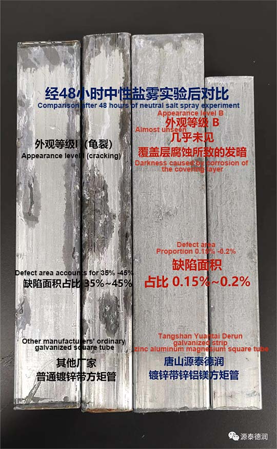 Binyuze mu bizamini bigereranya, ibicuruzwa bishya bya Tangshan Yuantai Derun Steel Pipe Co., Ltd., umurongo wa galvanisedzinc aluminium magnesium kare, ifite byinshi birwanya ibidukikije kwangirika kurutaibisanzwe bisanzwe bya galvanised strip kare tubeibicuruzwa.